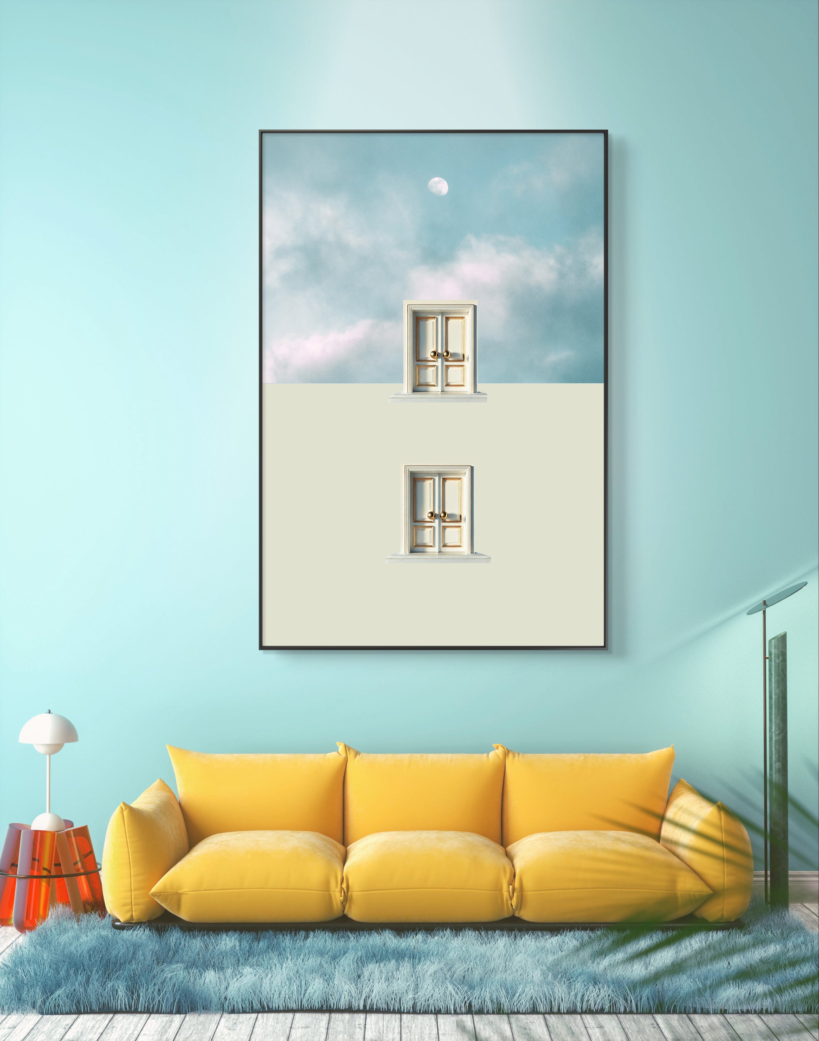 Invite inspiration into your space with 2 Doors, a compelling abstract art print that captures the essence of opportunity from both the heavenly realm and earthly realms. This striking piece features two parallel doors: one set amidst the heavenly expanse and the other grounded in the world below.