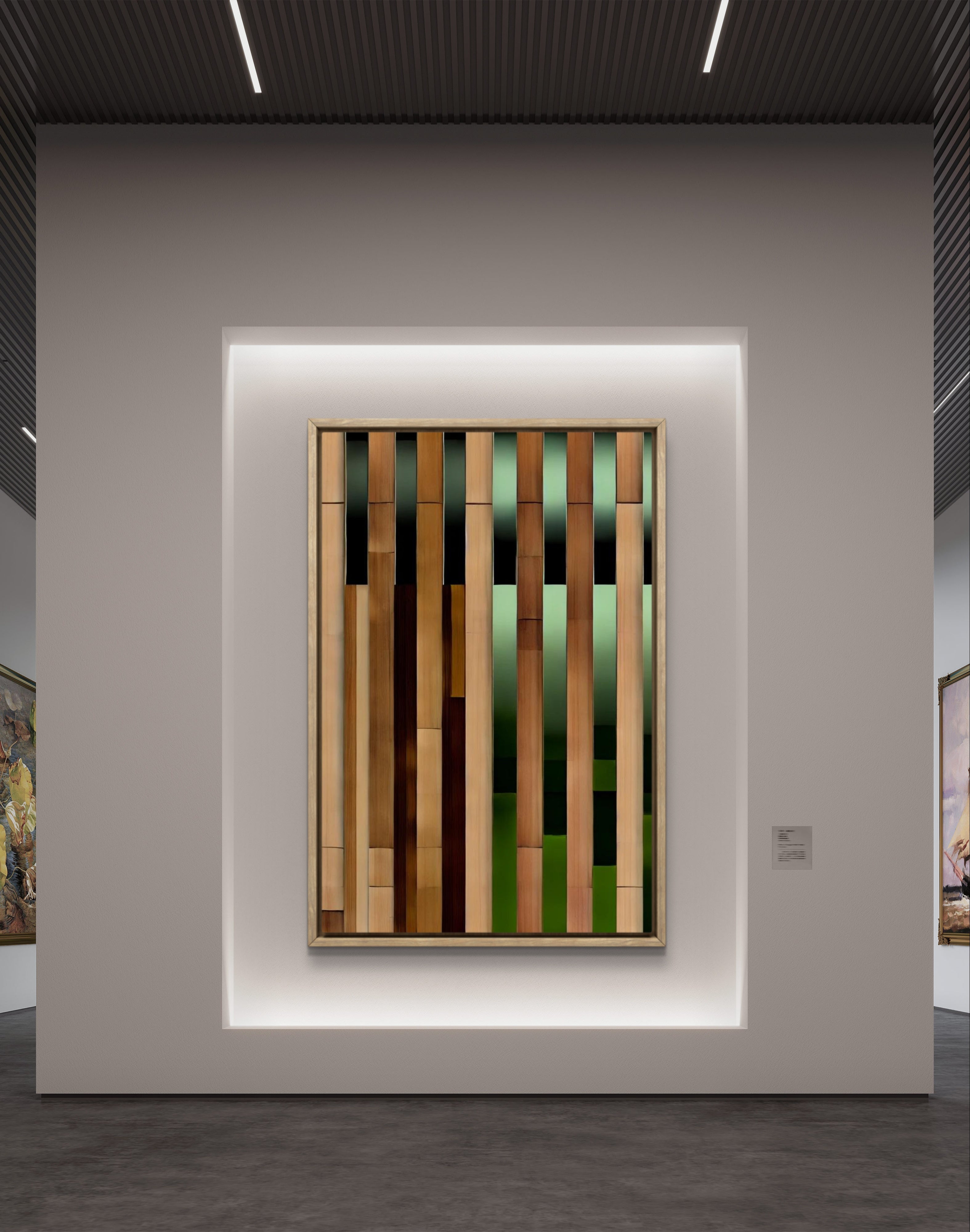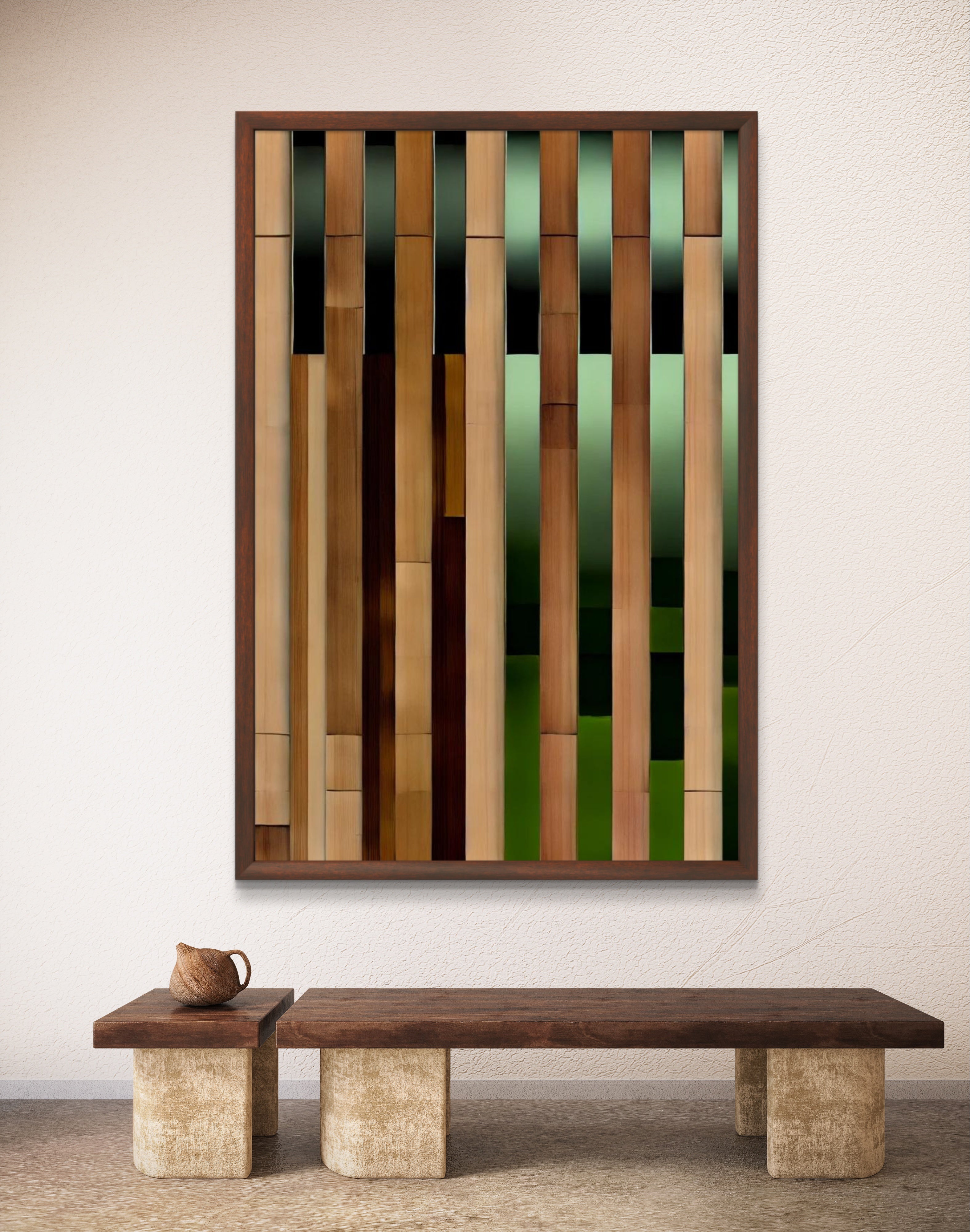 The intricate patterns of the bamboo, combined with the rich, greenish tones, create a dynamic interplay of texture and color, evoking a sense of tranquility and complexity.