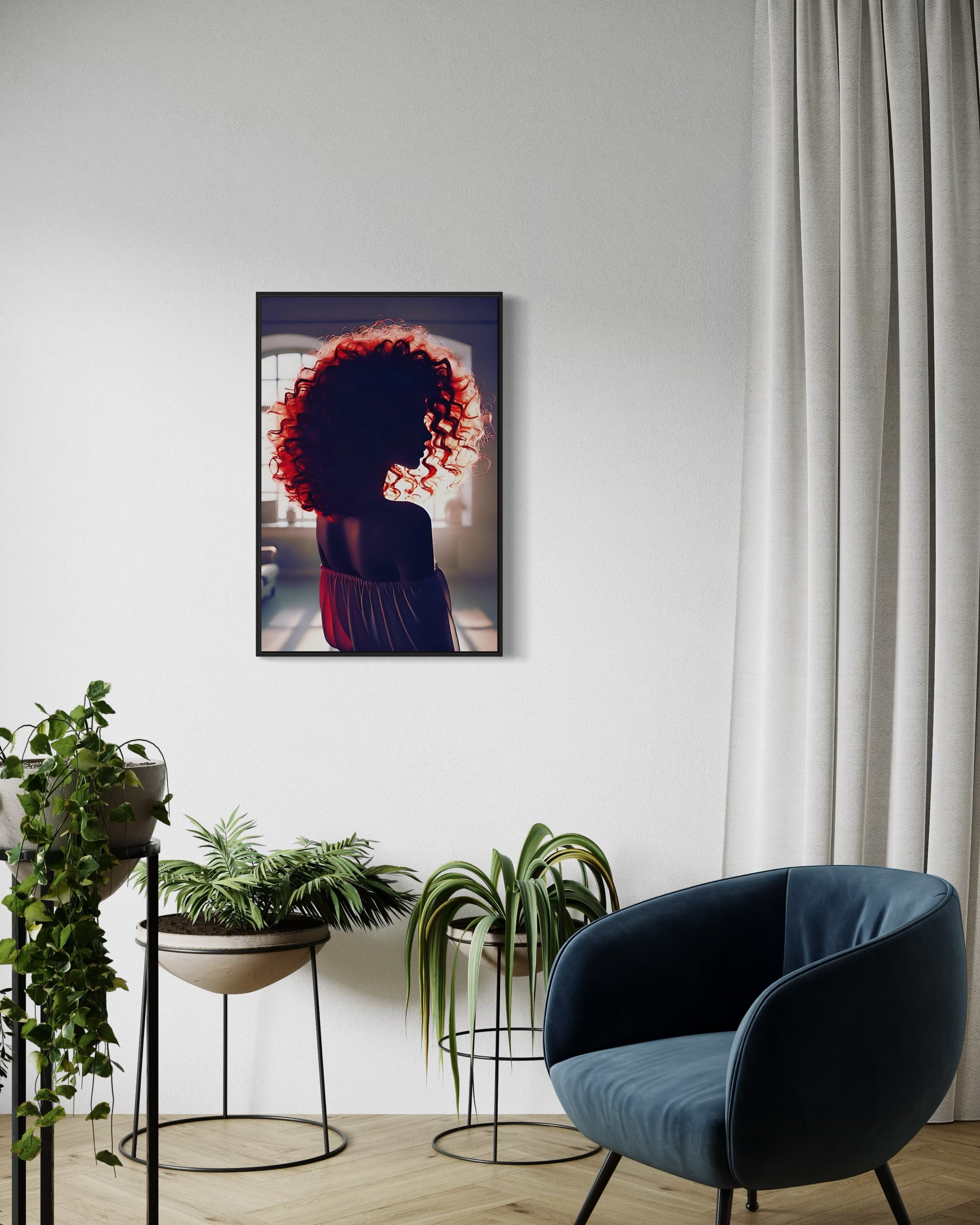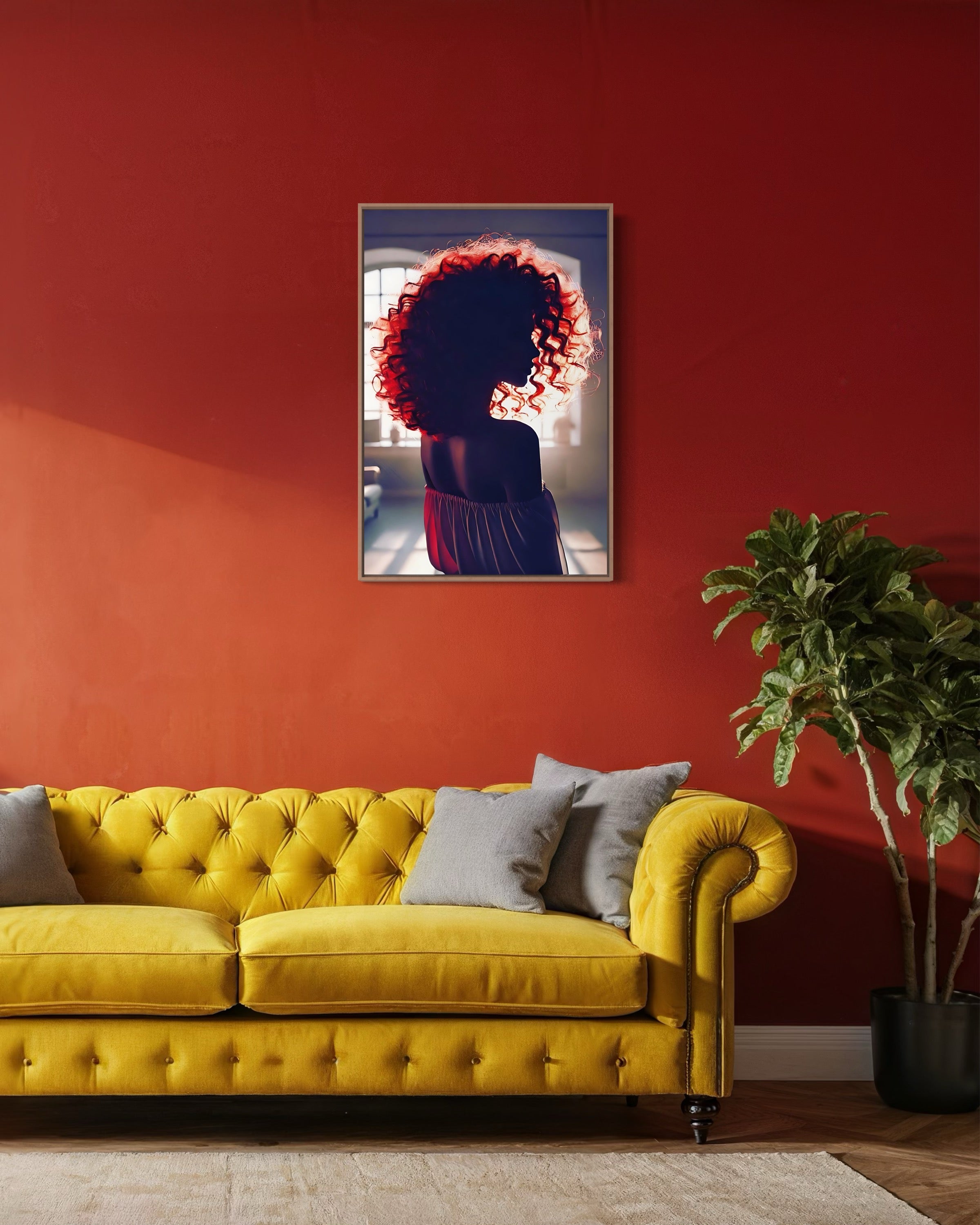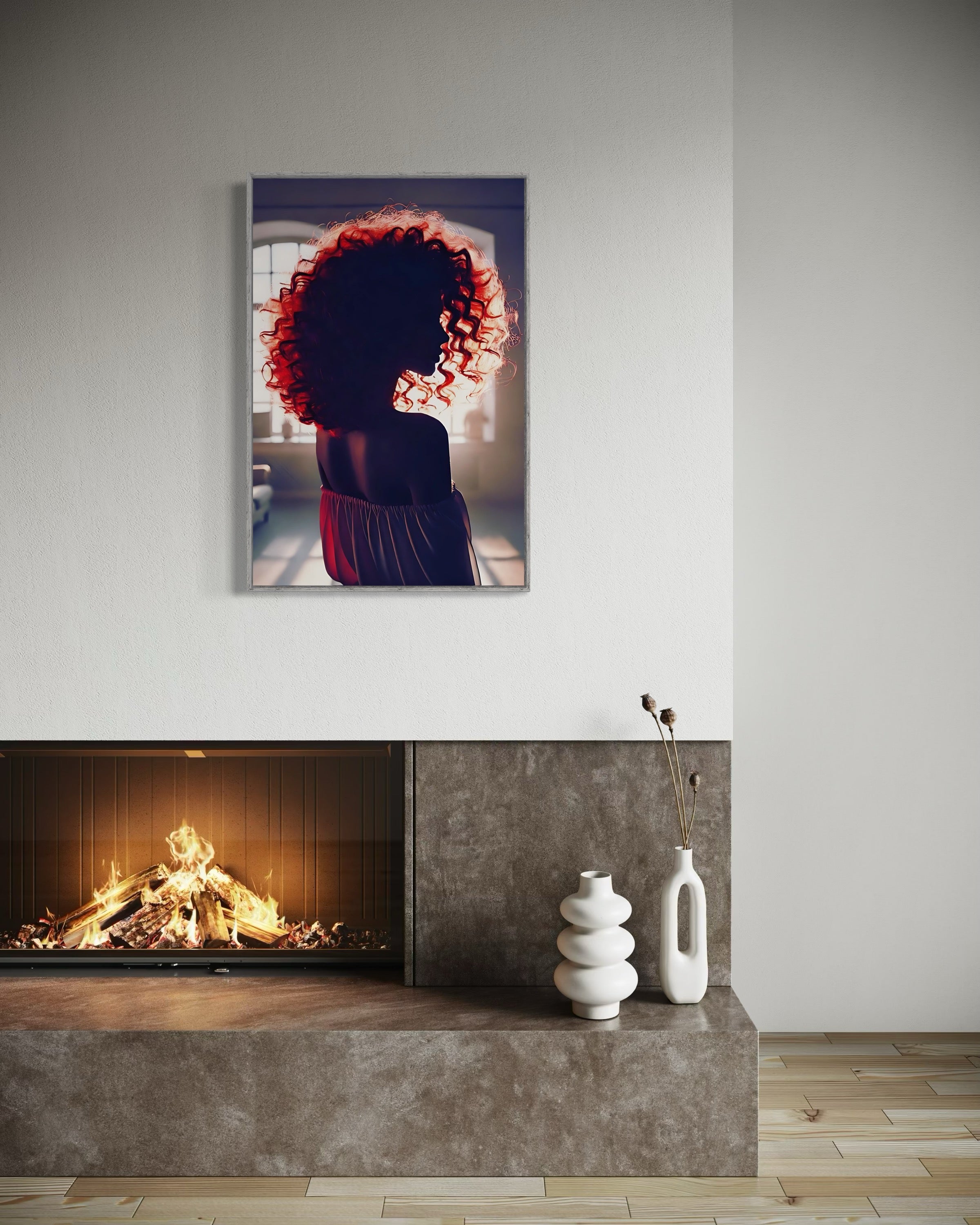 Bring a touch of nocturnal elegance to your space with Billy Jean, a striking art print that captures the haunting beauty of a moonlit silhouette. This evocative photograph features a woman with long, curly hair standing serenely in the middle of her room. The soft glow of the moon transforms her into a delicate silhouette, casting a dreamlike ambiance.
