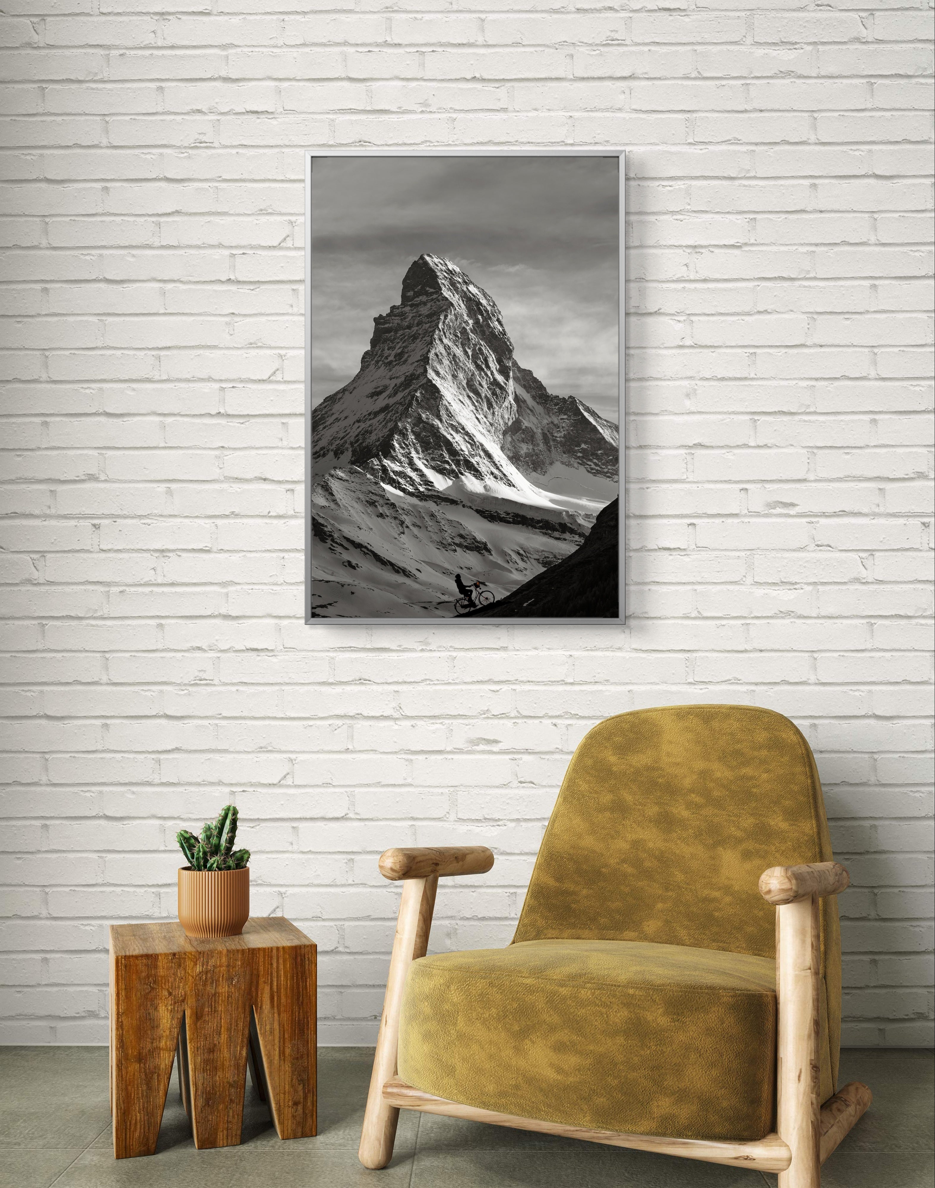 Transform your space with Edge of Surface, a stunning art print that captures the raw beauty and rugged majesty of mountainous terrain. This striking photograph features a dramatic landscape of towering mountains, rendered in rich grey and black tones that evoke a sense of grandeur and mystery.