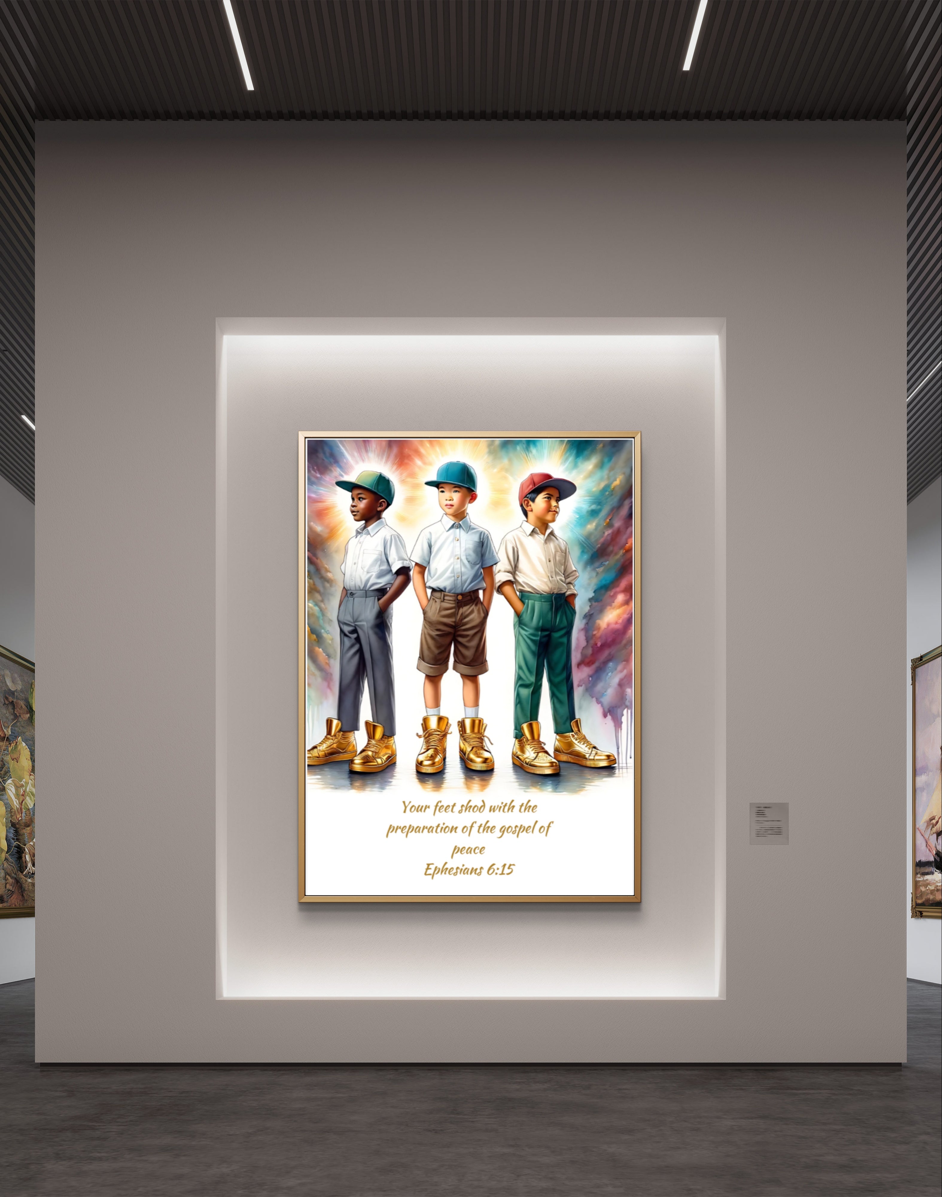 This painting was inspired by the Bible verse in Ephesians 6:15 -and your feet shod with the preparation of the gospel of peace.