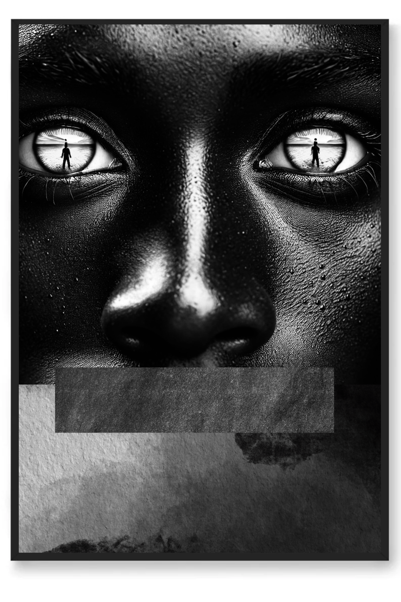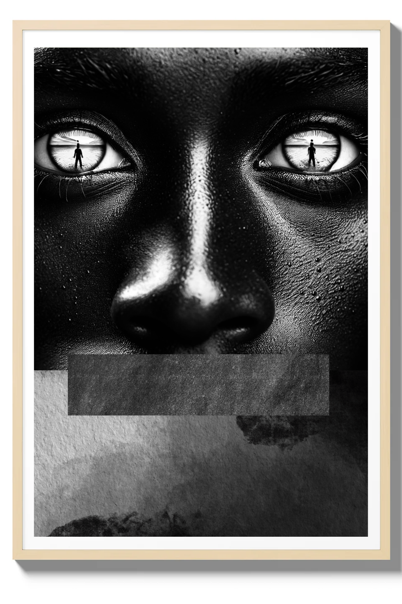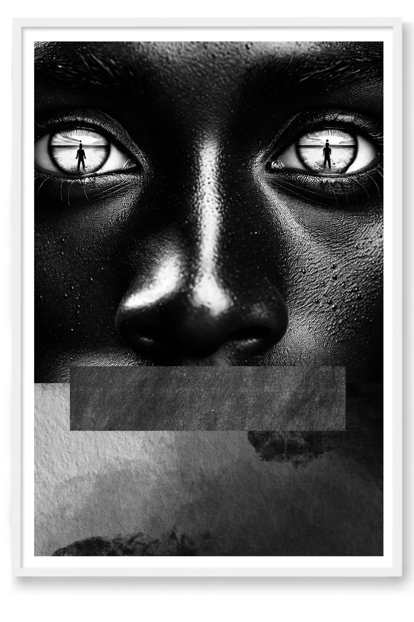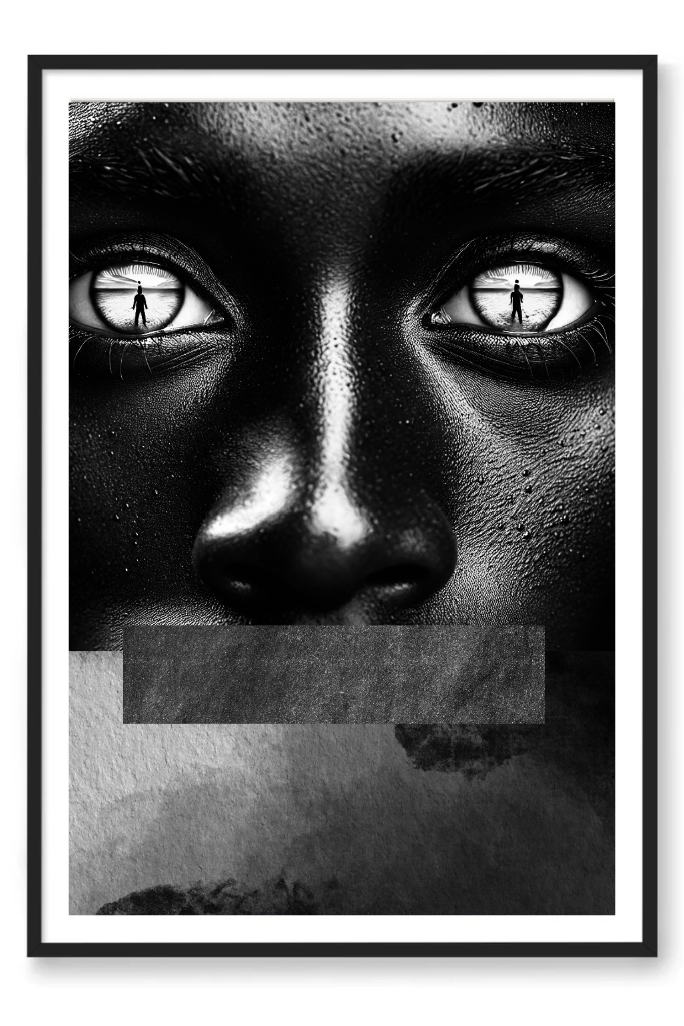 Immerse your space in profound insight with Prophecy, a stunning black-and-white art print that captures the depth of divine revelation. This close-up photograph features a man whose eyes, reminiscent of the vast ocean which embodies a human like form, offering a penetrating view into the mysteries and promises of the world to come.