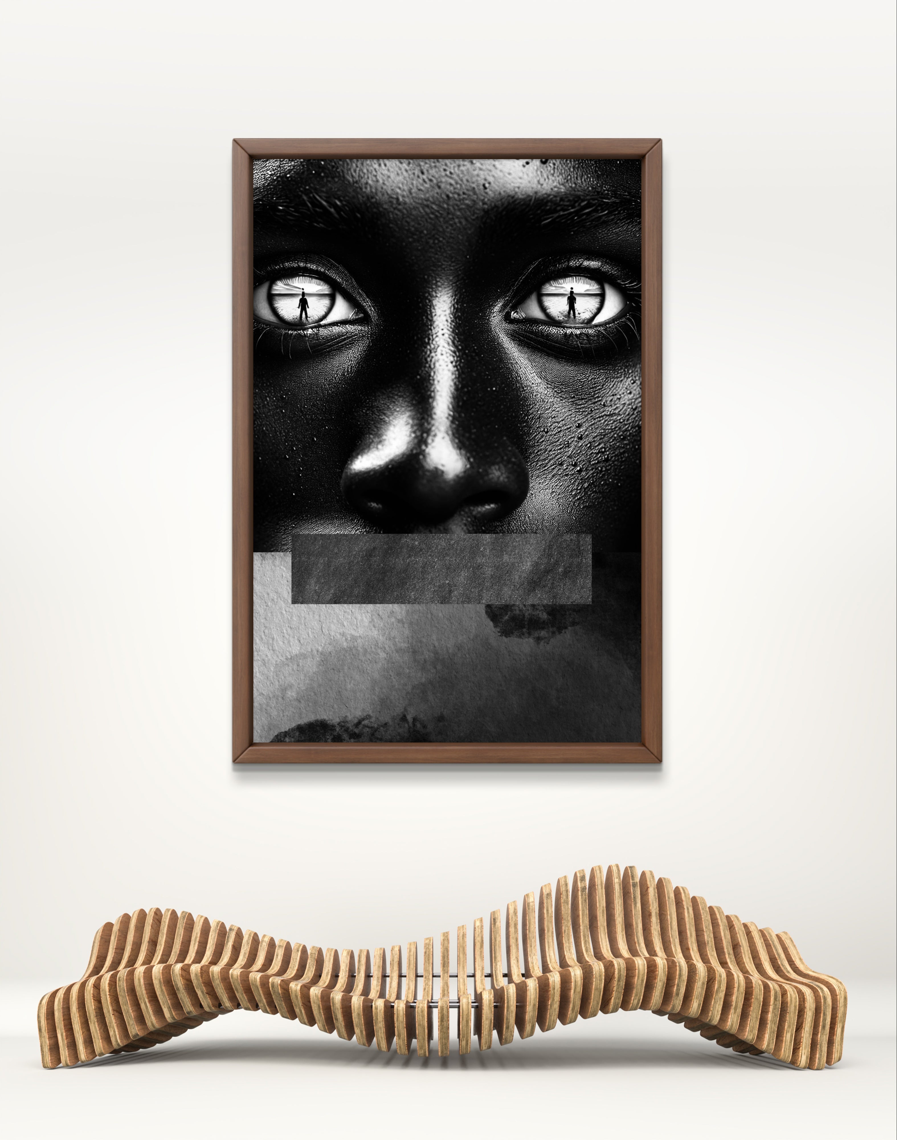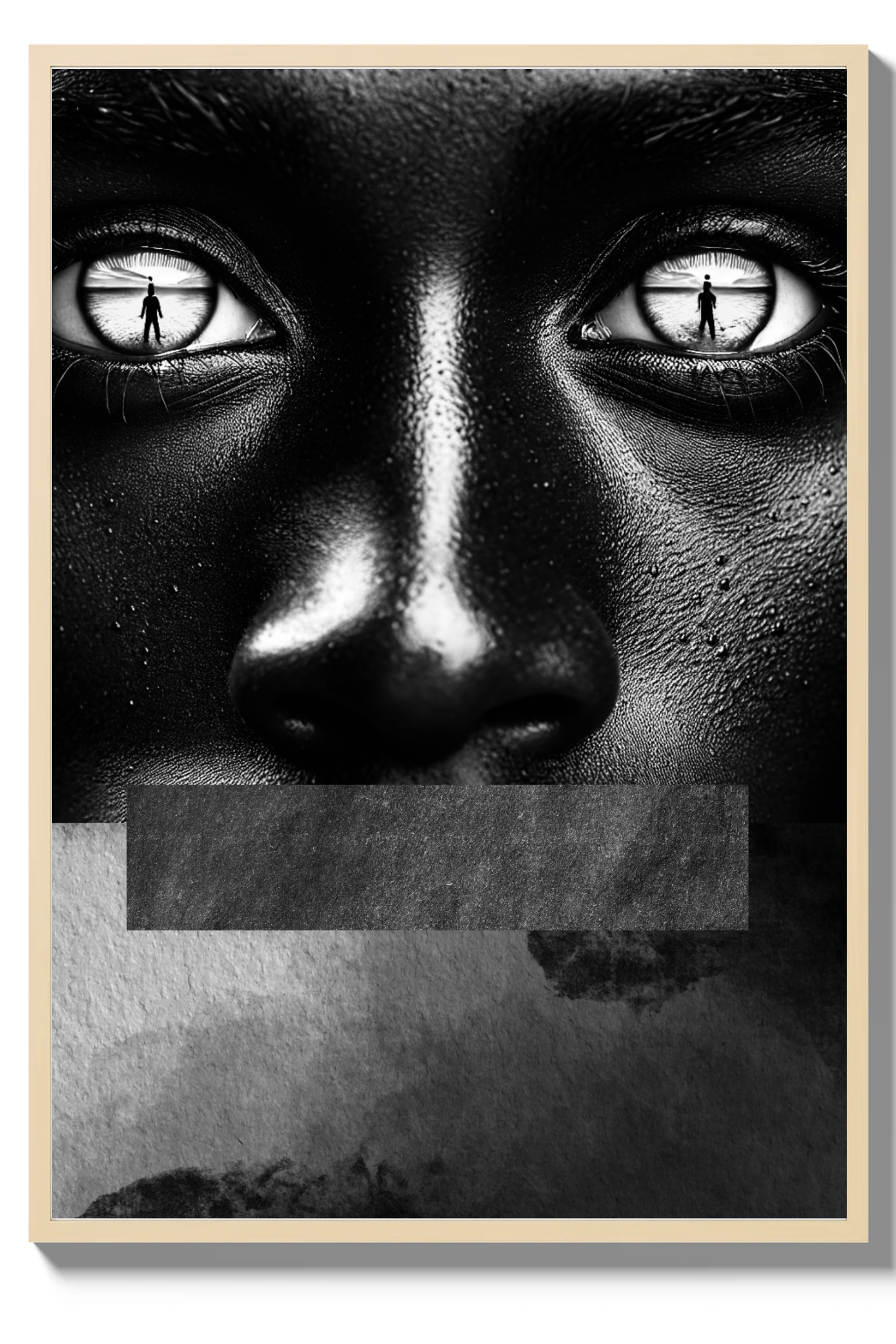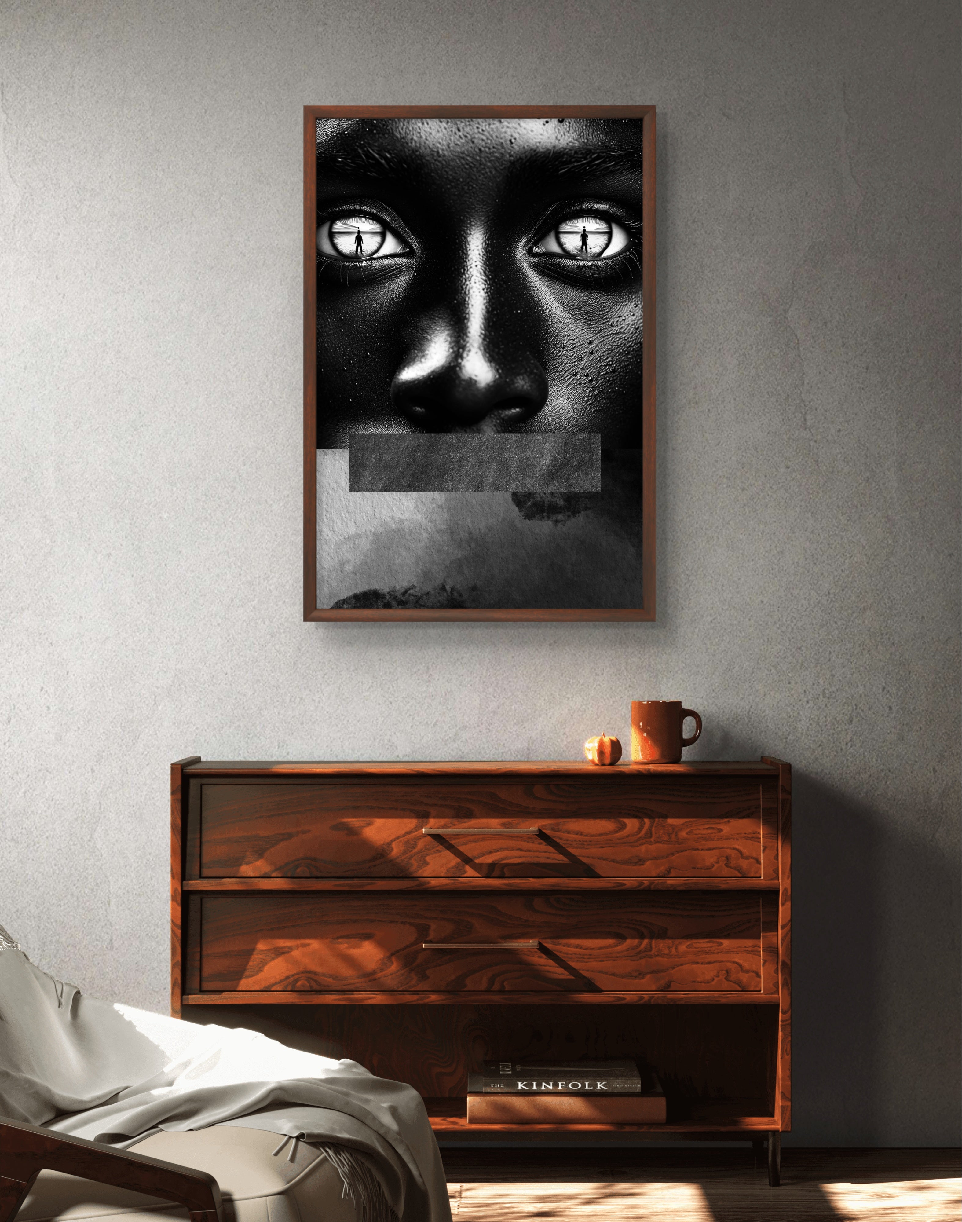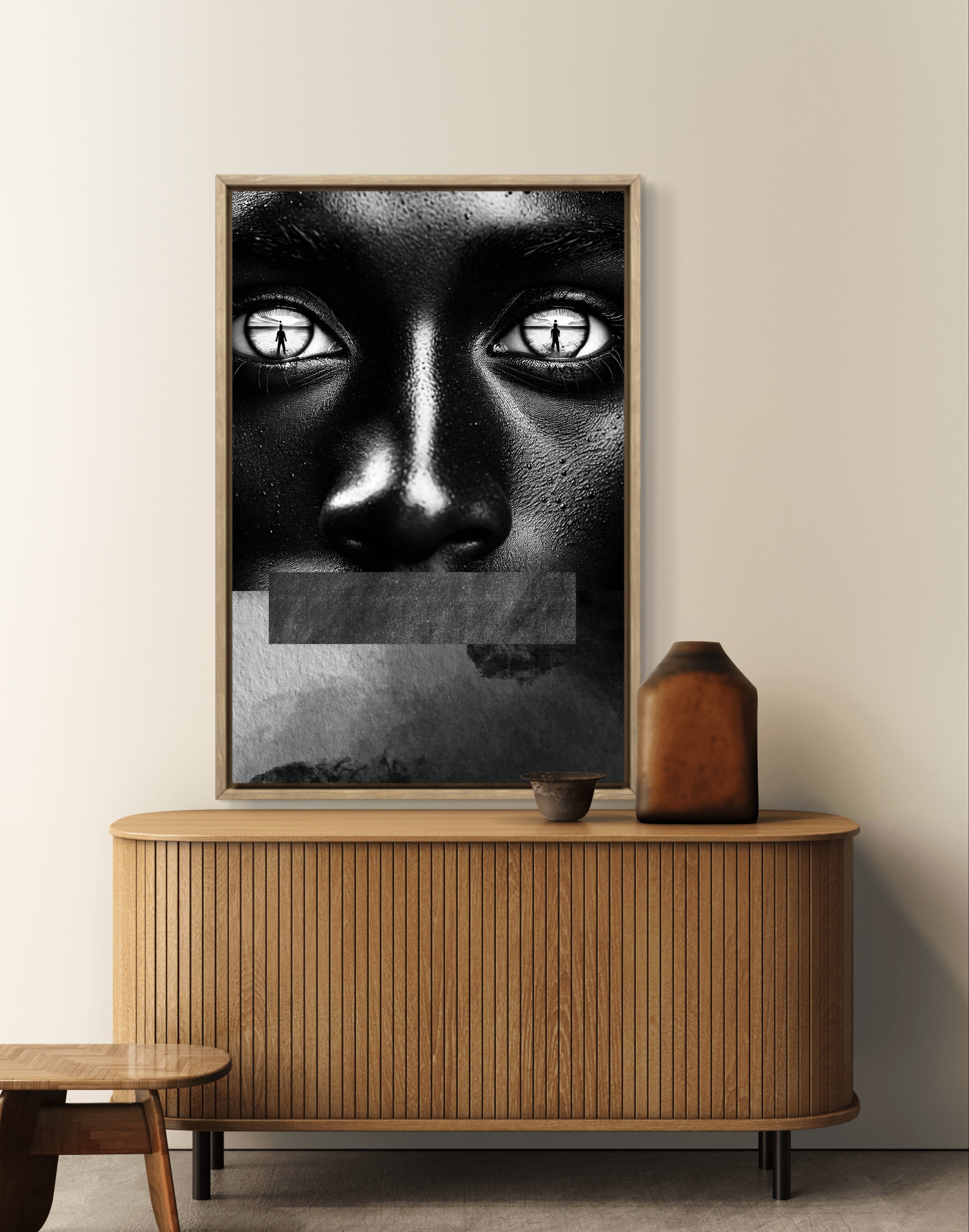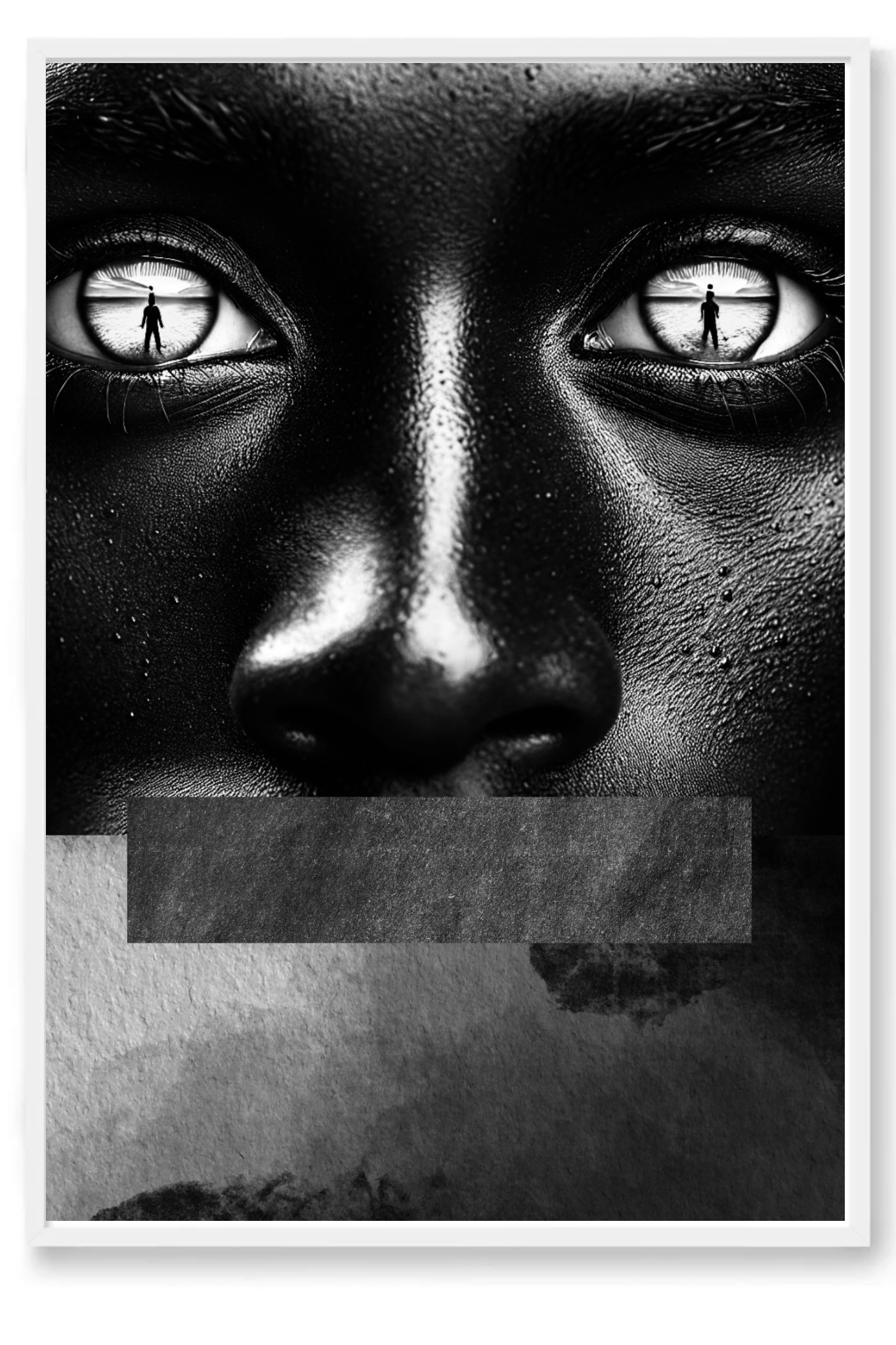 Immerse your space in profound insight with Prophecy, a stunning black-and-white art print that captures the depth of divine revelation. This close-up photograph features a man whose eyes, reminiscent of the vast ocean which embodies a human like form, offering a penetrating view into the mysteries and promises of the world to come.