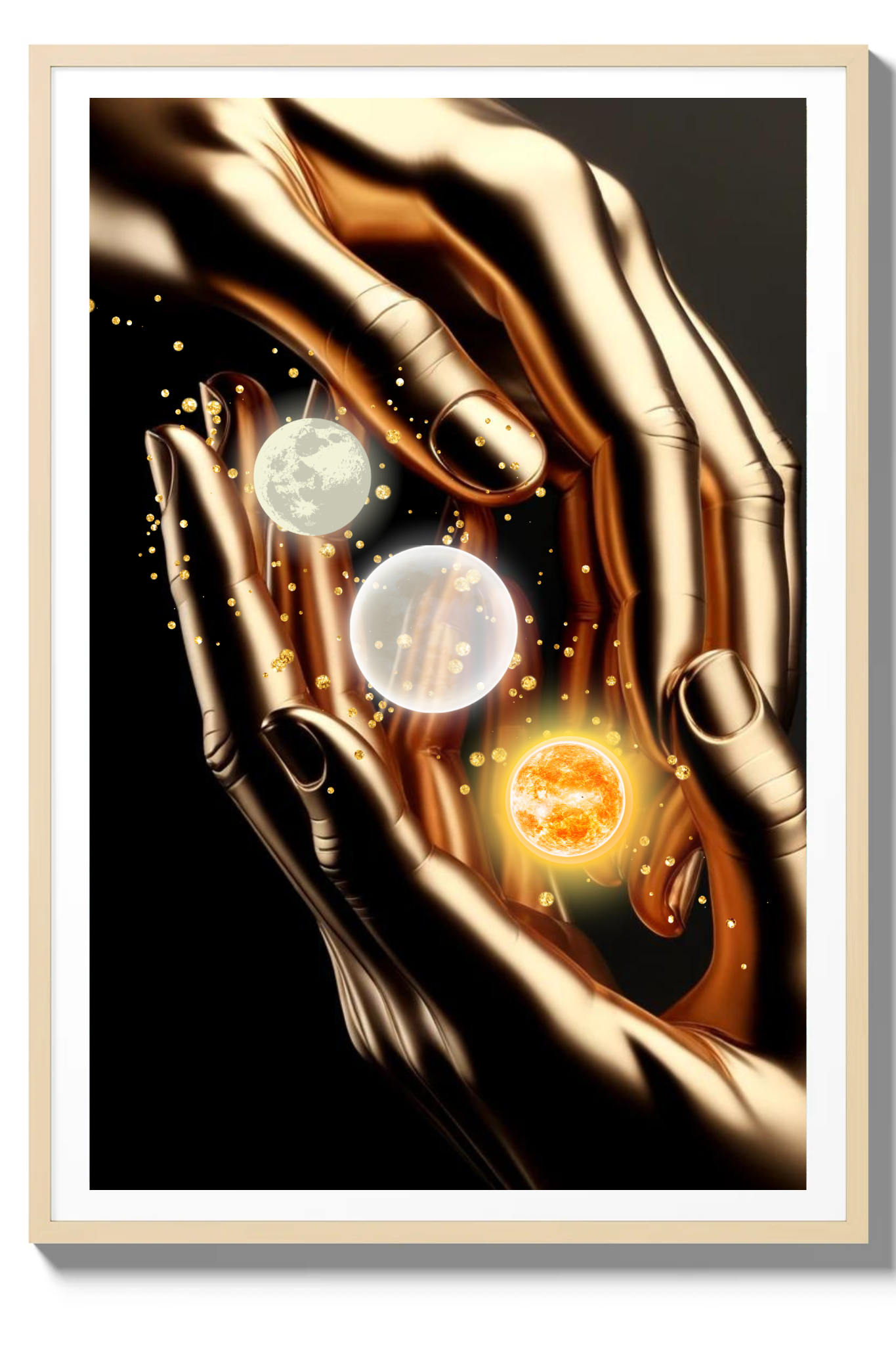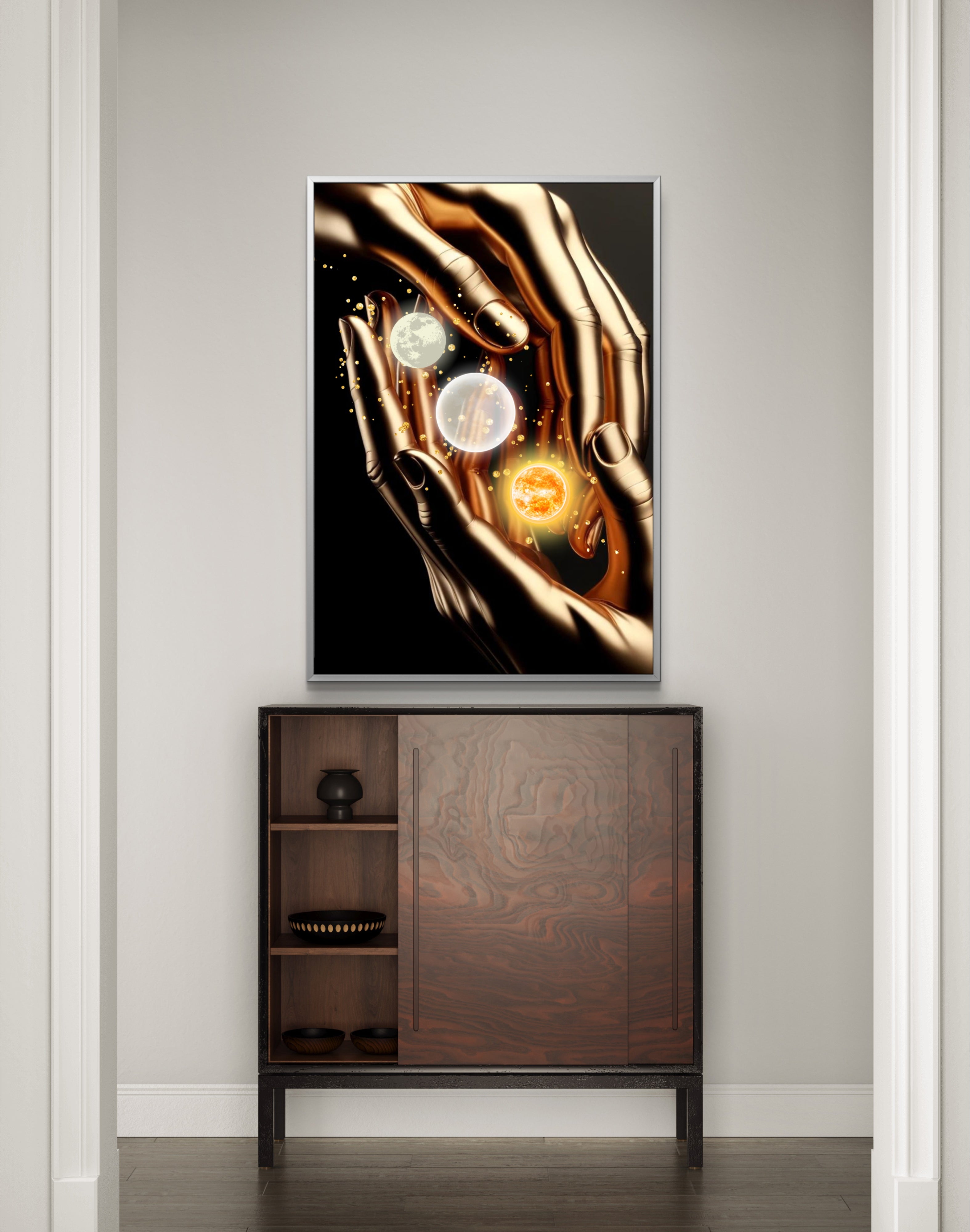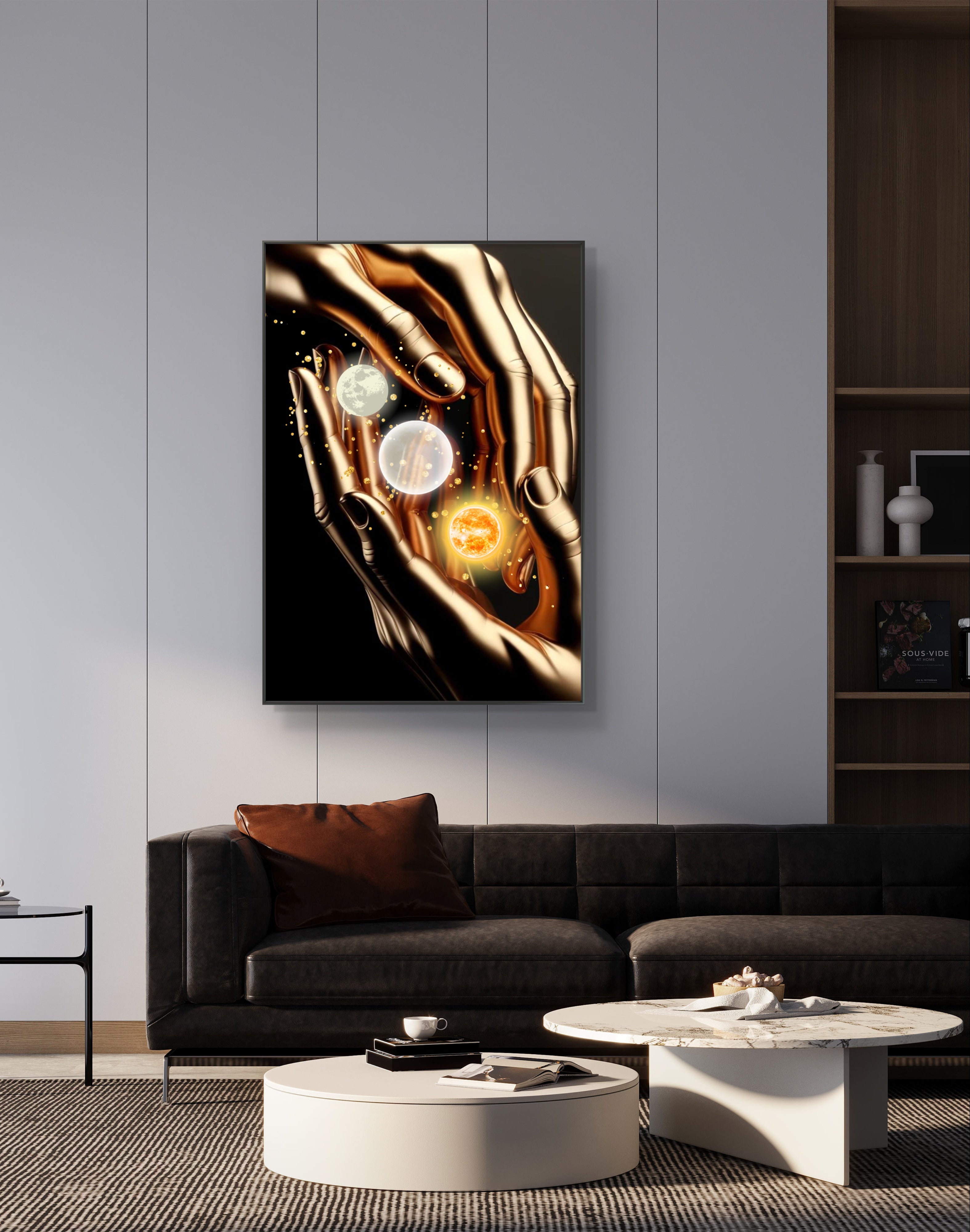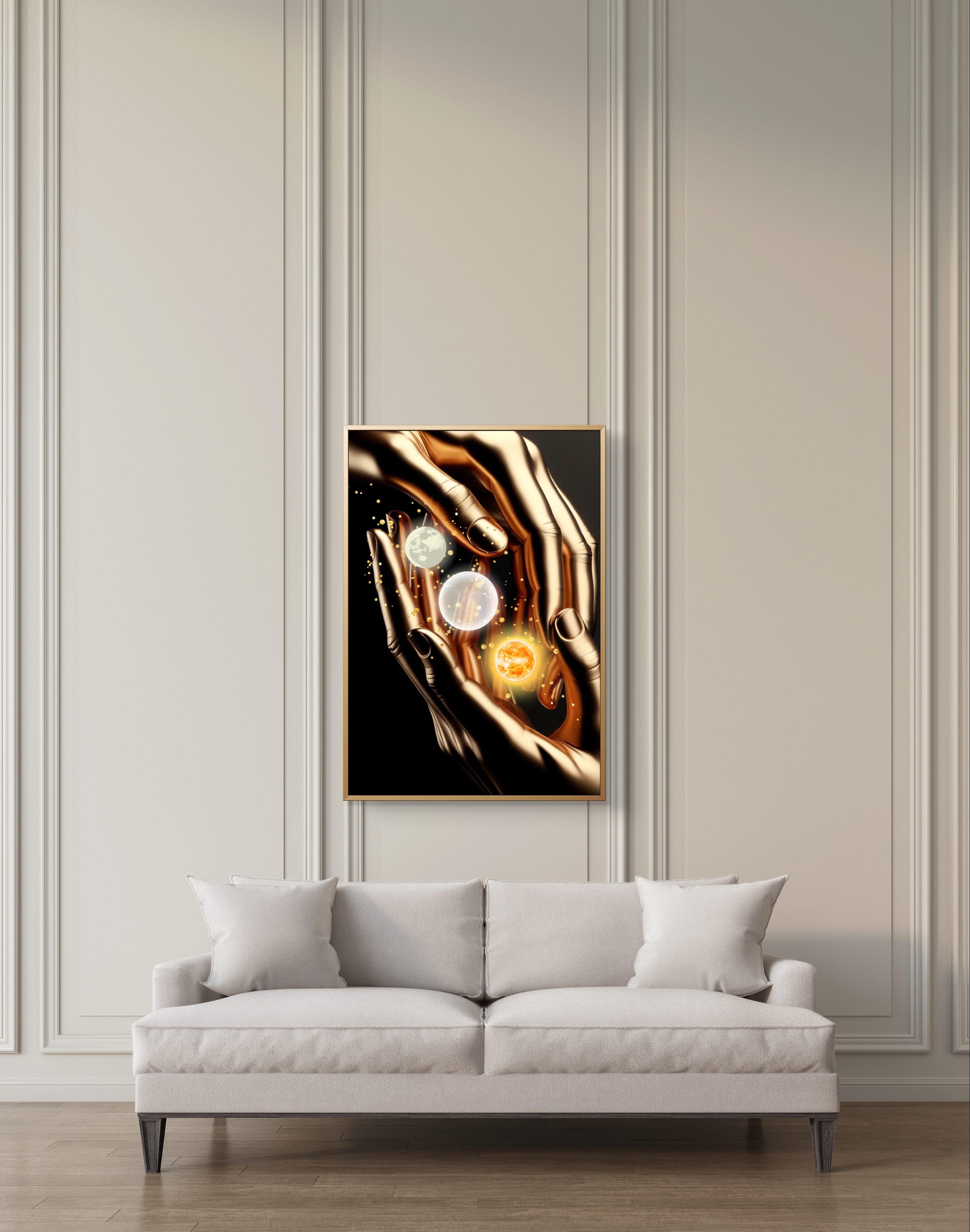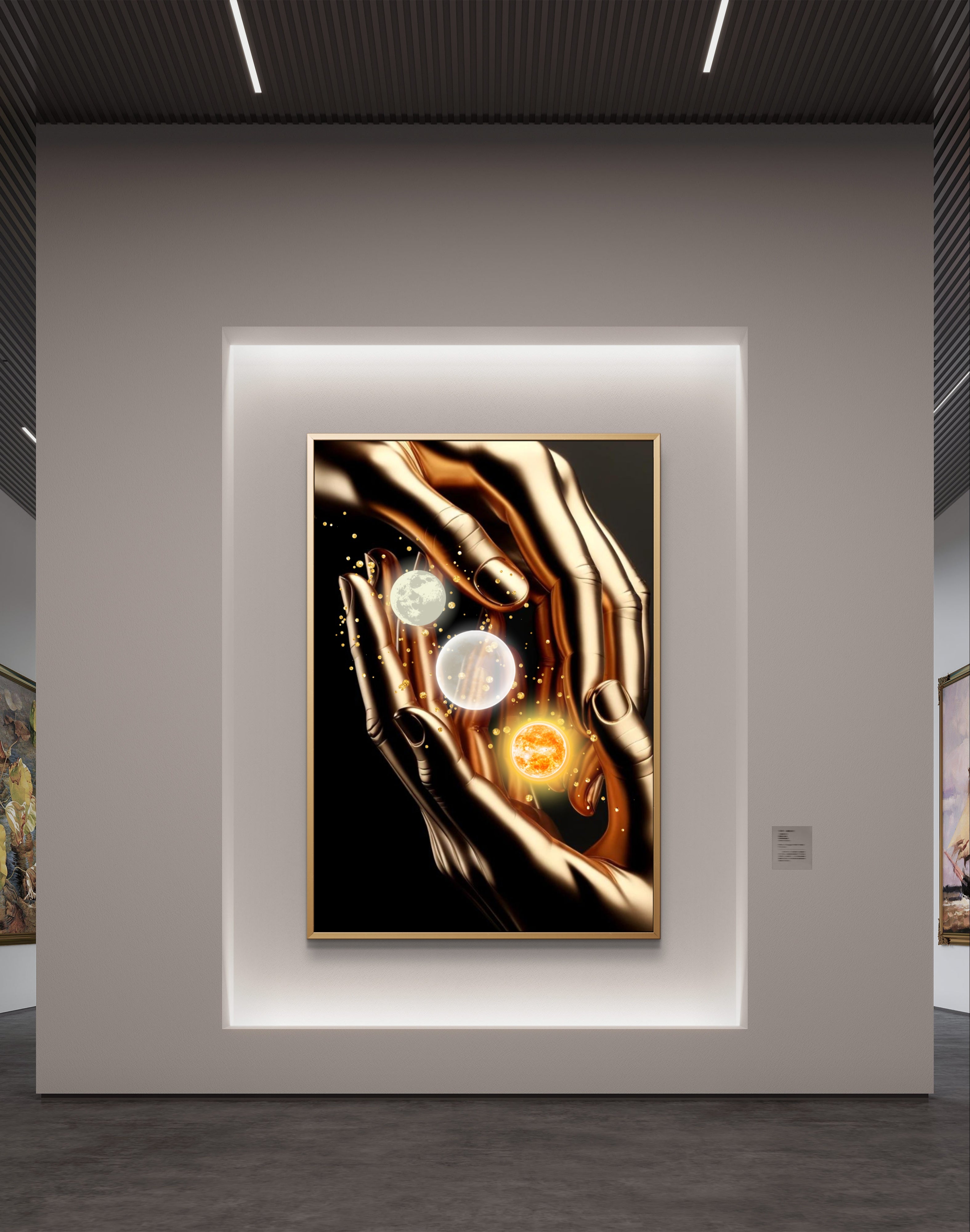 Whether displayed in a living room, office, or sacred space, Touch of Glory serves as a powerful reminder of the divine power through the creation of God's hands. Let its radiant beauty and spiritual depth inspire awe and reverence in your heart.