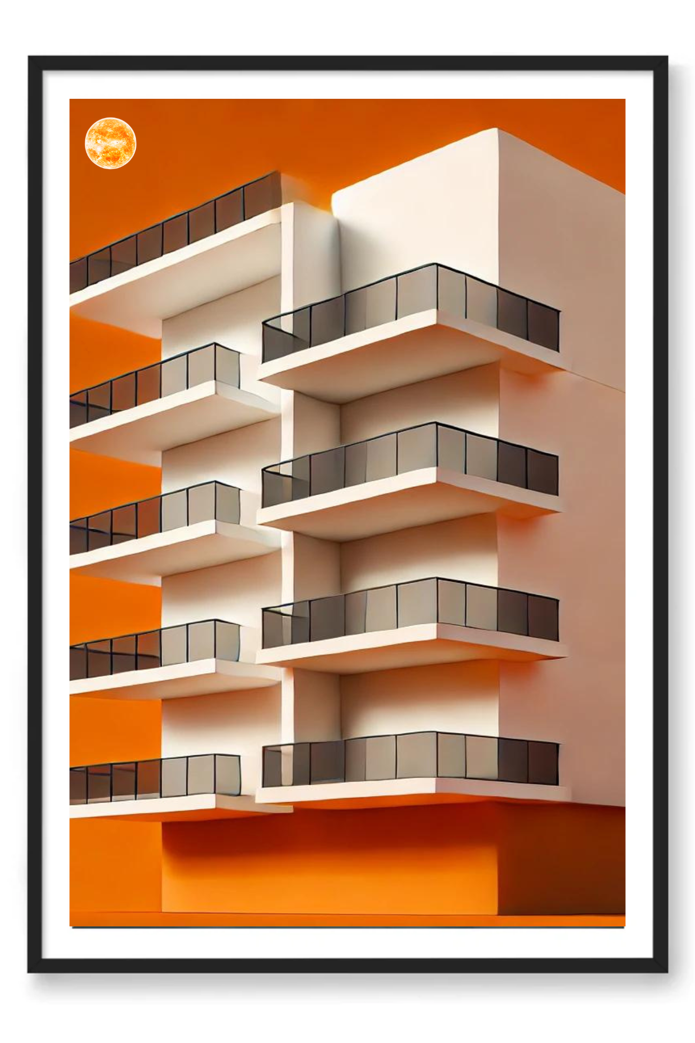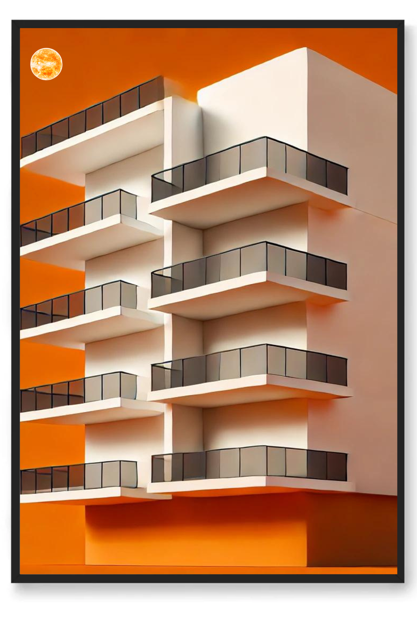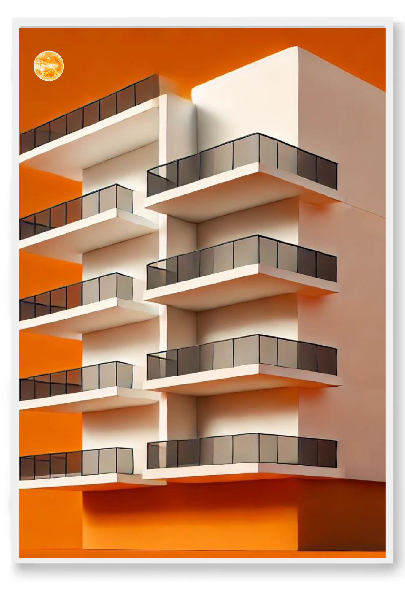 Illuminate your space with the compelling message of Under the Sun, a striking art print that captures the essence of resilience and enduring faith. This powerful image depicts a tall, multi-layered building set against a radiant orange background, with a glowing orangish sun casting its warm light from above.